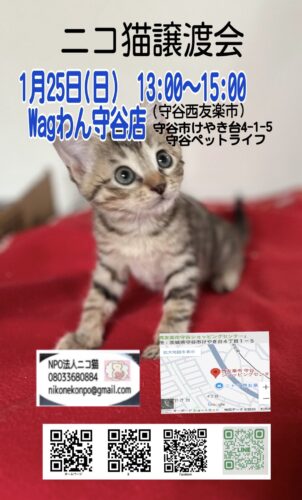 1月25日(日)はWagわん守谷店にて譲渡会です。