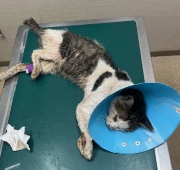 7月〜9月の保護活動 ニコ猫 投稿日:2025.10.13 7月 阿見町役場より連絡があり交通事故にあって倒れている。と、言う野良猫を保護。病院で診てもらうと極度の貧血、脱水、風邪症状。事故による外傷は無いようだが、片手が逆方向に伸び切った為と思われる脱力とナックル。採血して検査へ。 とりあえずご飯を食べてもらい体力回復を目指す。