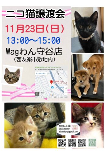 Wagわん守谷店(西友楽市敷地内)にて譲渡会です。